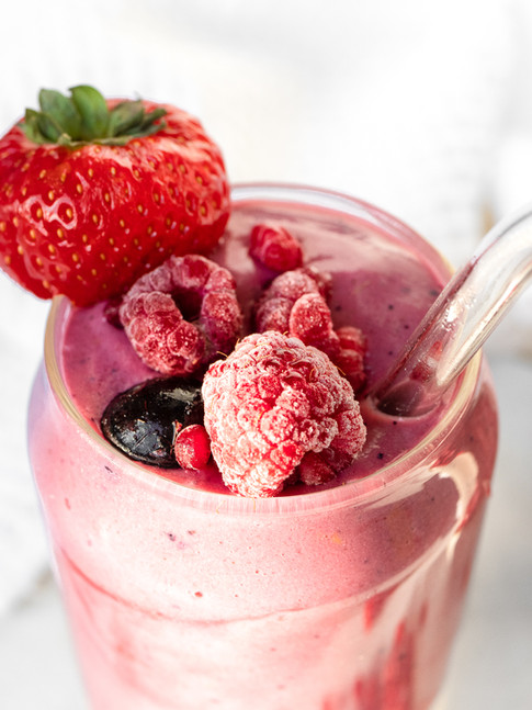 Het is bijna Valentijnsdag, dus laten we maar even in de stemming komen met een mooie roze smoothie! Ik ben zelf eigenlijk helemaal niet zo'n fan van eiwitshakes. Zo’n scoop eiwitpoeder, mengen met water is echt niks voor mij. Waar ik wel blij van word, is deze all-in-one smoothie. Een smoothie met lekker wat eiwitten en een extra portie fruit en groente.