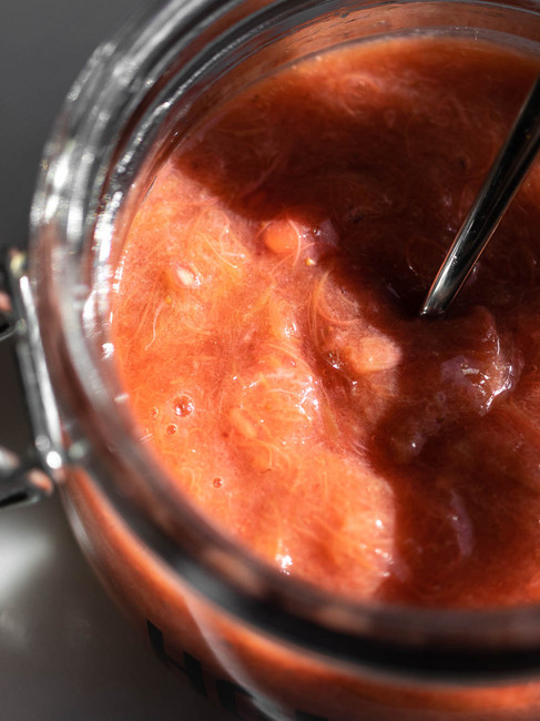 Ingrediënten voor 1 grote pot gezonde rabarbermoes / 4 porties