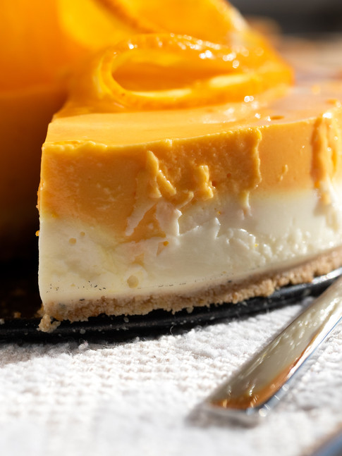 Verdeel de witte kwark laag over de 2 springvormen en daarna de oranje kwarklaag.